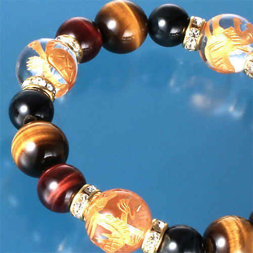 ミックスタイガーアイブレス 五黄寅 水晶ストラップ付き