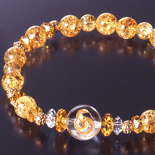 [付属品]蛇パーツ1個(22×23mm 真鍮/ゴールド色仕上)、黄水晶1個(12mm珠/128面カット)/サイズ:約8cm、重量:約15g、中糸:ステンレスワイヤー