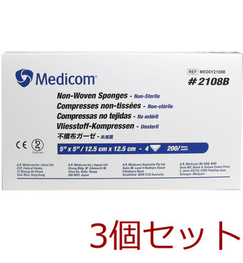 不織布ガーゼ 4つ折 12.5cm×12.5cm 箱入 200枚入 3セット 送料無料