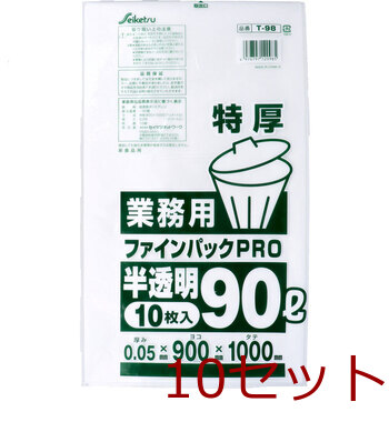 業務用ごみ袋 ファインパックPRO 半透明 90L 特厚0.05×900×1000mm 10枚入 10セット 送料無料