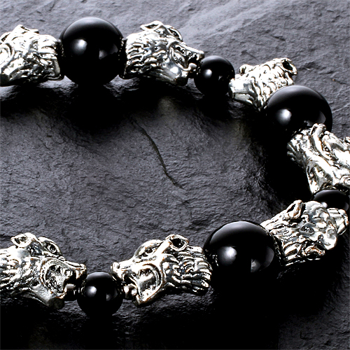 狼パーツ10個(12×8mm 真鍮)、オニキス5個(10mm珠)、5個(6mm珠)、銅玉10個(2.5mm珠)