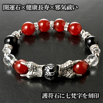 七梵字 赤めのう開運ブレス 梵字 お守りカード付き