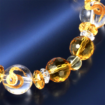 白水晶4個(12mm珠 蛇刻印)、8個(6×3mm/カット)、黄水晶8個(10mm珠/128面カット)、4個(6mm珠)、8個(8×4mm/カット)