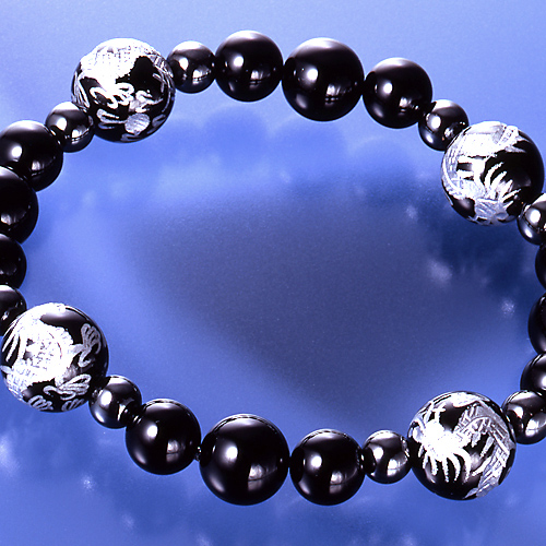オニキス4個(12mm珠 龍刻印)、4個(10mm珠)、8個(8mm珠)、ヘマタイト8個(6mm珠)