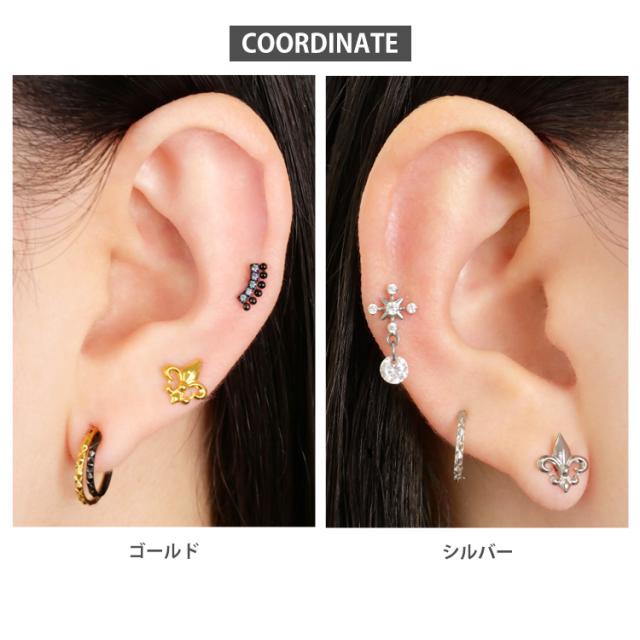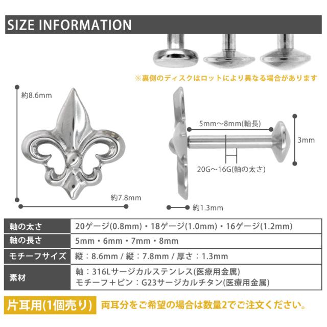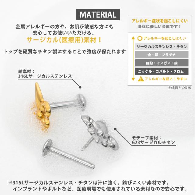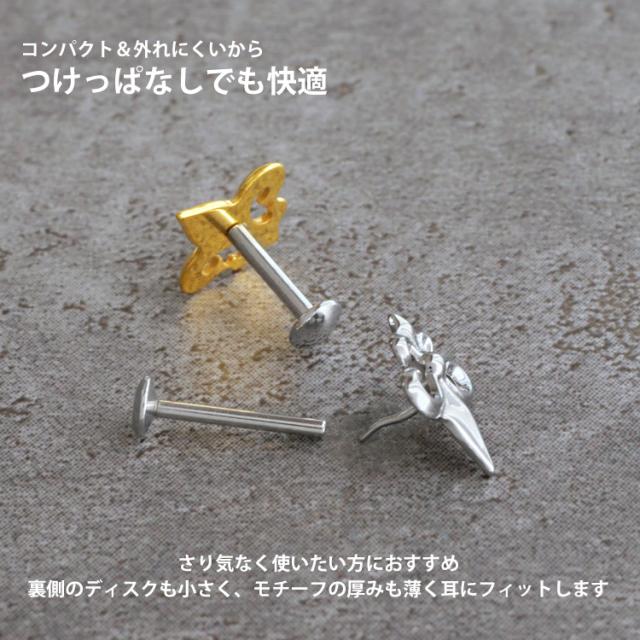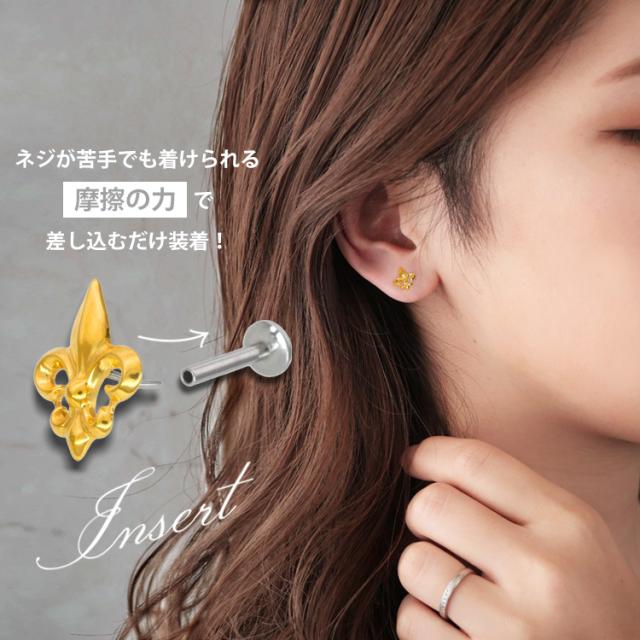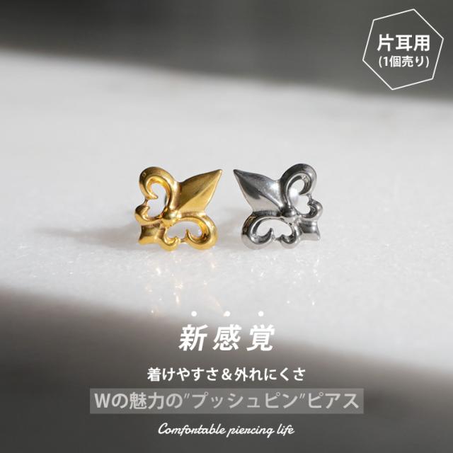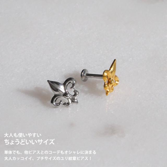 【摩擦の力で外れにくい】つけっぱなしピアス ボディピアス 20G 18G 16G ユリの紋章プッシュピンラブレット トラガス 軟骨ピアス 【片耳用】 【30日間お試し期間あり/返品交換保証】