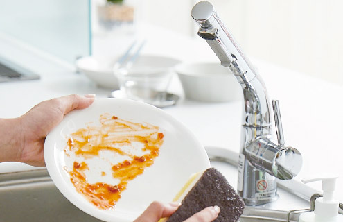 界面活性剤と溶剤の効果で、細かな泡が油汚れを包み込み、がんこな汚れをスッキリ落とします。さらに、泡立ち・泡持ちがよく、快適に食器を洗うことができます。