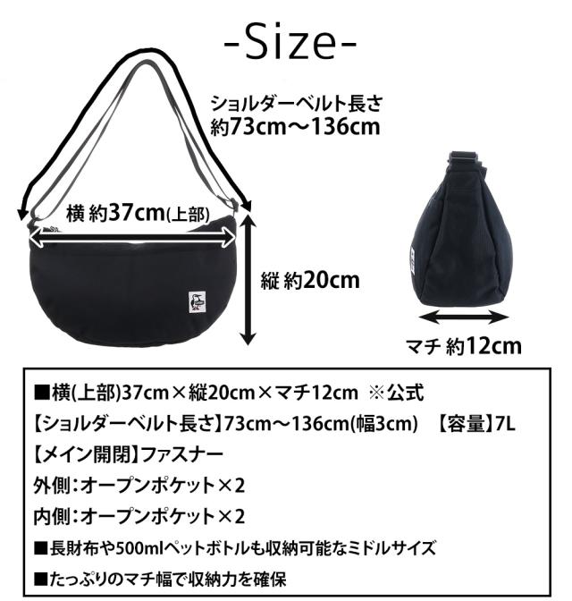 | サイズ(約) ※当店実寸値 | 公式サイズ 横(上部)37cm×縦20cm×マチ12cm 【ショルダーベルト長さ】73cm〜136cm(幅3cm) 【容量】7L | ||