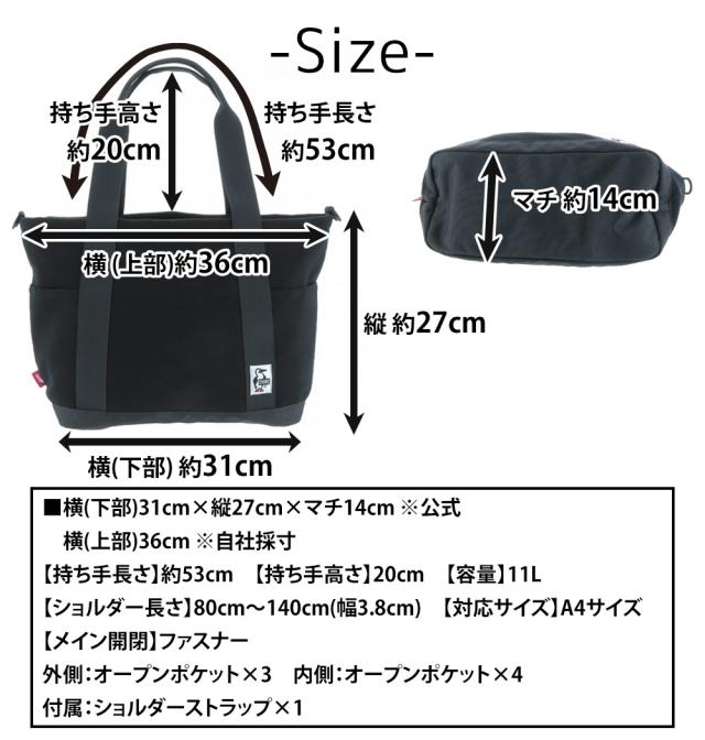 | サイズ(約) ※当店実寸値 | 公式サイズ 横(下部)31cm×縦27cm×マチ14cm 自社採寸サイズ 横(上部)36cm 【持ち手長さ】53cm 【持ち手高さ】20cm 【ショルダーベルト長さ】80cm〜140cm(幅3.8cm、取外し可) 【対応サイズ】A4サイズ 【容量】11L | ||