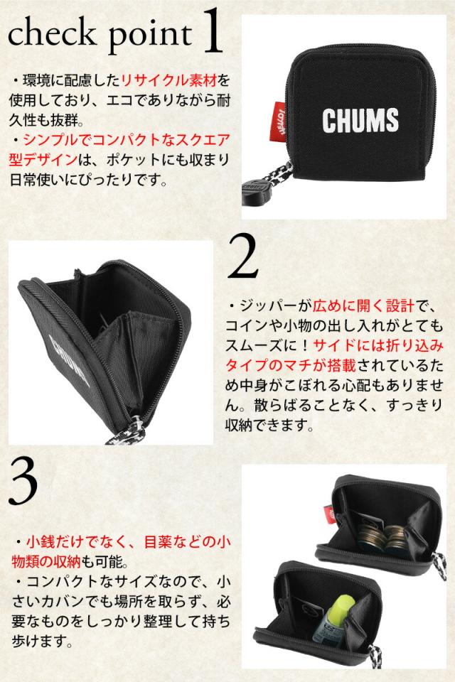 チャムス 雑貨 小物 コインケース 小銭入れ CHUMS リサイクルチャムススクエアコインケース CH60-4027 メンズ レディース キッズ ネコポス可能 ポイント10倍 誕生日プレゼント ギフト ラッピング無料 【正規代理店】