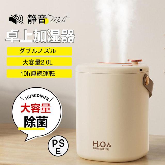 加湿器 小型 卓上 ミニ 超音波 アロマ 除菌 空気清浄機 大容量 USB充電式 コードレス 上部給水式 ダブルノズル オフィス 寝室 車用