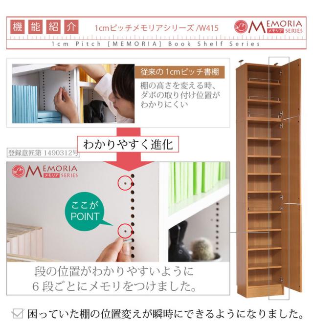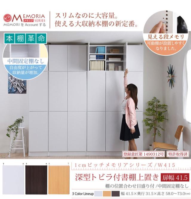 MEMORIA 本棚 深型 扉付き上置き単品 幅41.5 棚板が1cmピッチで調整できる メモリアシリーズ まるで図書館 スリム 大容量 文庫本 コミック(代引不可)【送料無料】