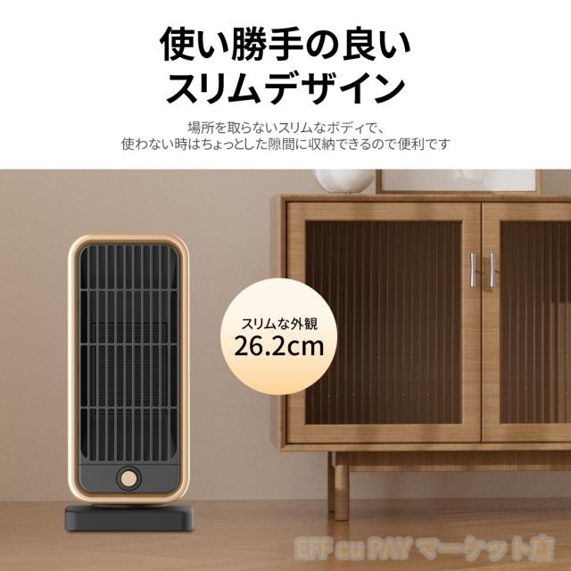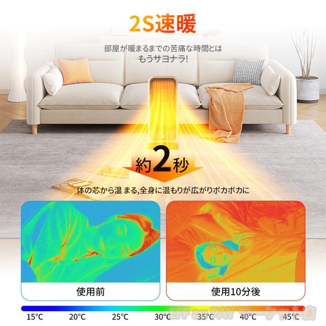パワフルな送風性能で、部屋全体を均一に暖めます。寒いスポットを作らず、どこにいても心地よい温もりを感じることができます。