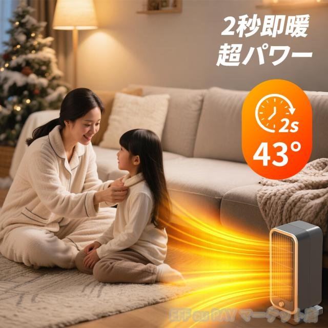 パワフルな高性能ヒーターが搭載され、2秒ですぐにポカポカと暖かくなります。寒さを感じる瞬間からすぐに快適な温度を提供し、冬の朝の肌寒さや外出先での冷えを解消します。