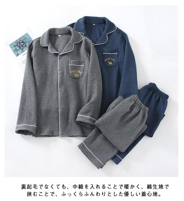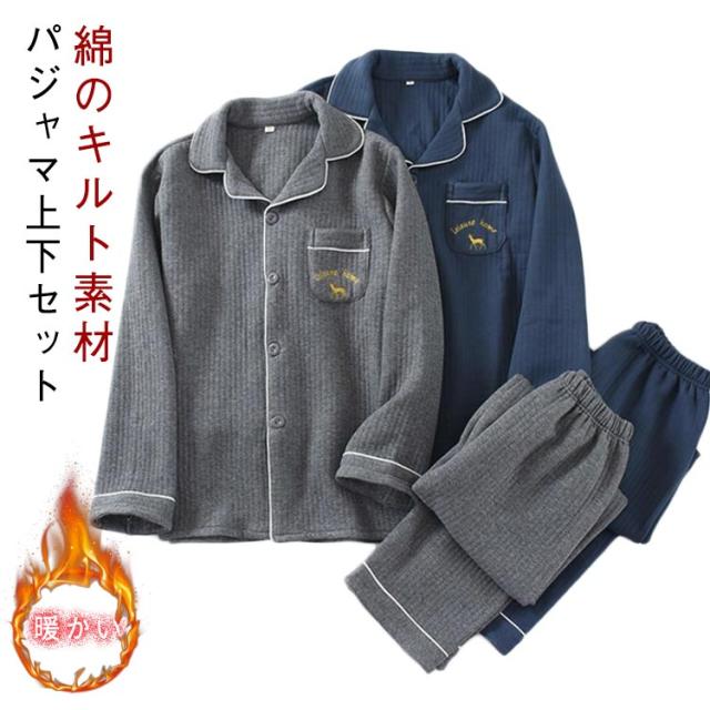 綿100% パジャマ M 暖かい キルト 肌に優しい 冬 上下セット パジャマ L シンプル 前開き メンズ 冬用 入院 紳士 旅行 無地 ルームウェア コットン 厚手 春 秋 男性 部屋着 大人 敬老の日 おしゃれ ギフト