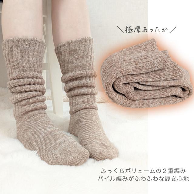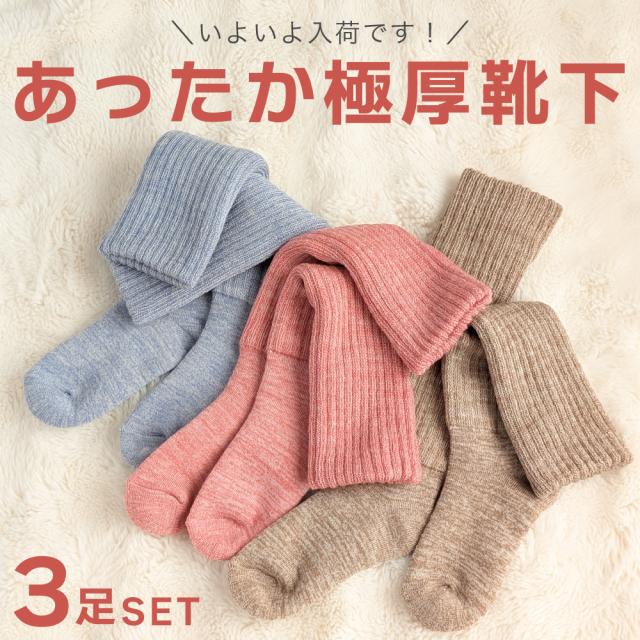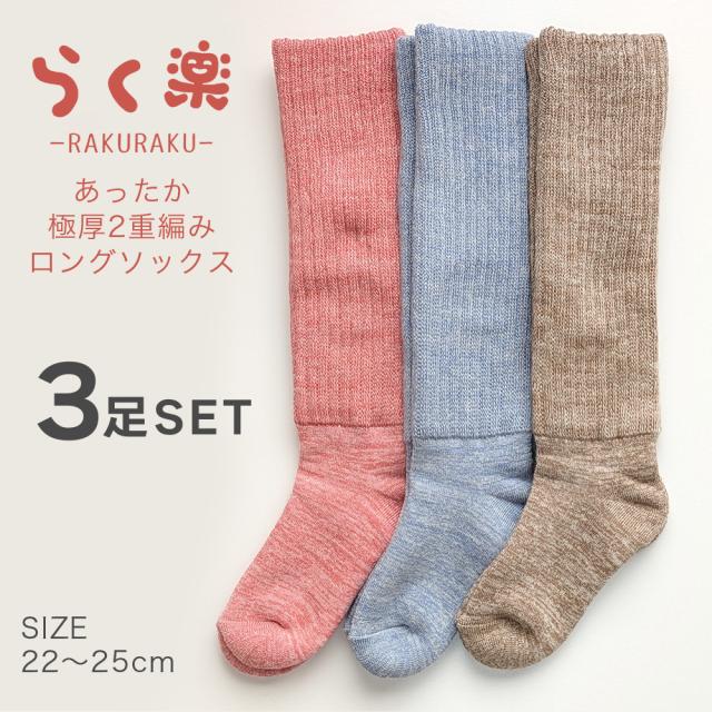 靴下 レディース あったか 極厚 2重編み ソックス 3足セット / らく楽 足元パイルで暖か保温 超厚手 ボリューミィなロングソックス あたたか おウチソックス ルームソックス 防寒 冷え取り 冷えとり ゆったり 22-25cm