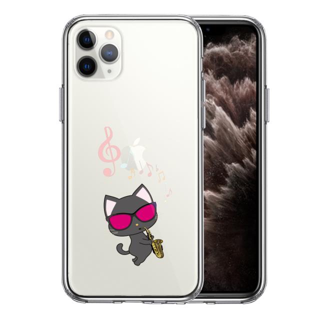 iPhone11pro ケース クリアサックス ねこ スマホケース 側面ソフト 背面ハード ハイブリッド 送料無料