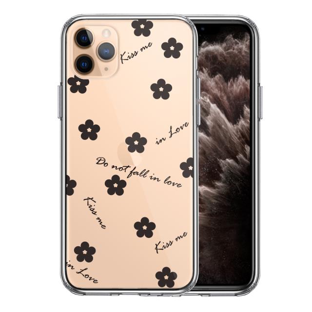 iPhone11pro ケース クリアフラワー ブラック スマホケース 側面ソフト 背面ハード ハイブリッド 送料無料