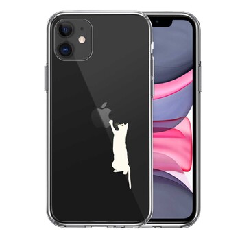 iPhone11 ケース クリア にゃんこ リンゴ つんつん