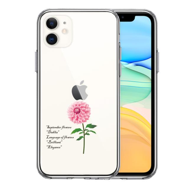 iPhone11 ケース クリア9月生まれ 花 ダリア 花言葉 付き スマホケース 側面ソフト 背面ハード ハイブリッド 送料無料