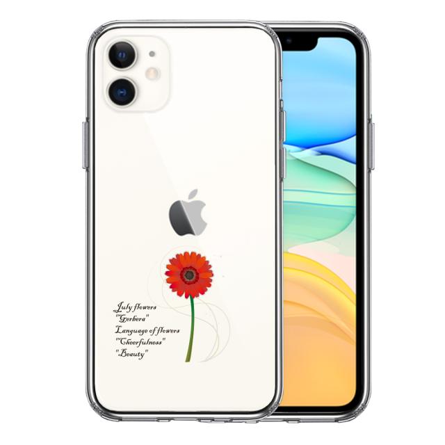 iPhone11 ケース クリア7月生まれ 花 ガーベラ 花言葉 付き スマホケース 側面ソフト 背面ハード ハイブリッド 送料無料