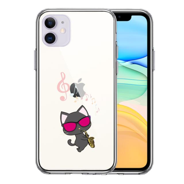 iPhone11pro ケース クリアサックス ねこ スマホケース 側面ソフト 背面ハード ハイブリッド