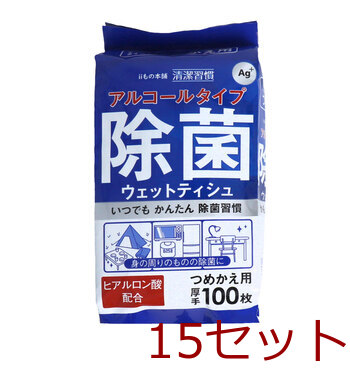 清潔習慣 アルコールタイプ 除菌ウェットティシュ ボトルタイプ 詰替用 100枚入 15セット 送料無料
