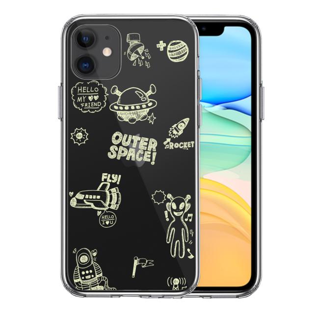 iPhone11 ケース クリア UFO 宇宙人 グリーン スマホケース 側面ソフト 背面ハード ハイブリッド 送料無料
