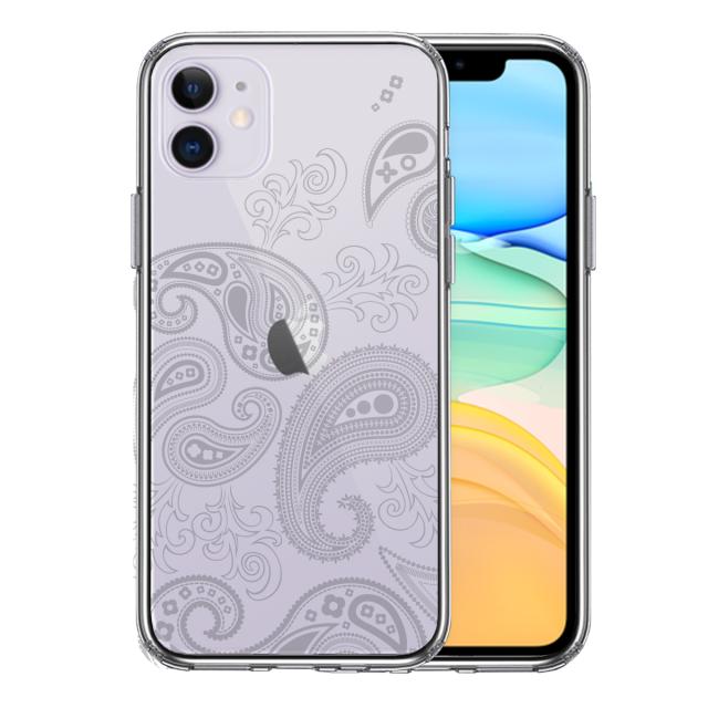 iPhone11 ケース クリアペイズリー 柄 ライトグレイ