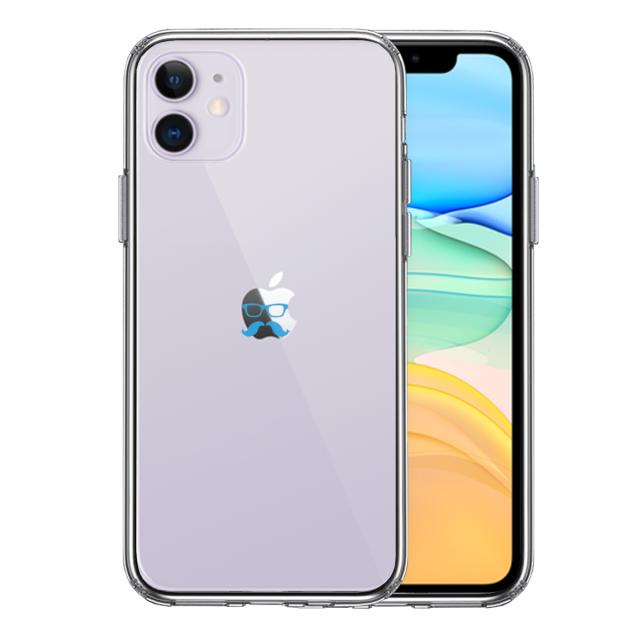 iPhone11 ケース クリア ひげ メガネ 髭 眼鏡 スカイ ブルー スマホケース 側面ソフト 背面ハード ハイブリッド 送料無料