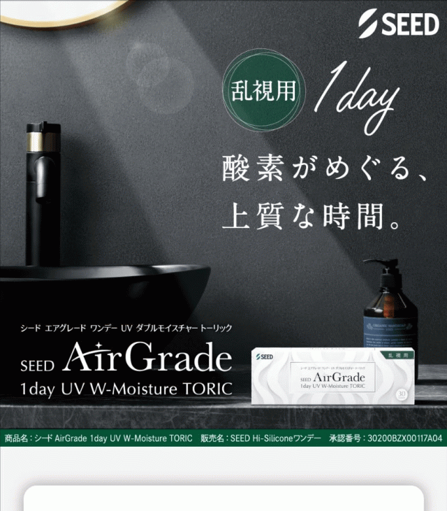 【※処方箋確認必須】エアグレードワンデーUV ダブルモイスチャー 乱視用 2箱セット (1箱30枚) AirGrade 1day UV W-Moisture TORIC シード コンタクトレンズ ワンデー 乱視用 1日使い捨て コンタクト 1Day SEED トーリック