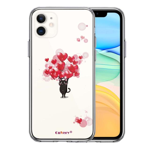 iPhone11 ケース クリア 猫 ネコ にゃんこ ハート 黒猫 2 スマホケース 側面ソフト 背面ハード ハイブリッド 送料無料