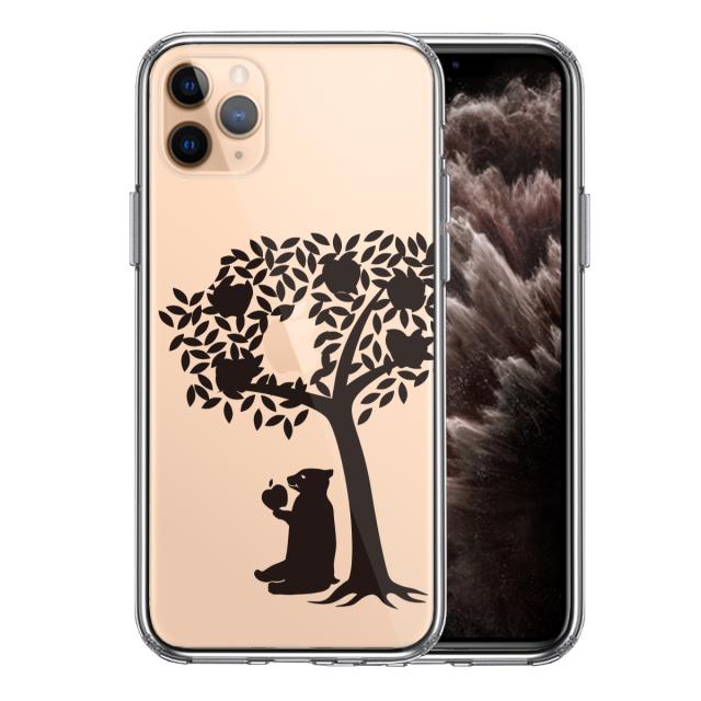 iPhone11 ケース クリア リンゴ食べるクマ スマホケース 側面ソフト 背面ハード ハイブリッド
