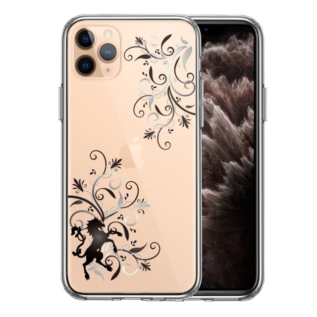 iPhone11pro ケース クリア フローラル & ユニコーン (グレー スマホケース 側面ソフト 背面ハード ハイブリッド 送料無料