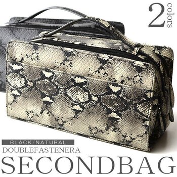フェイクレザーパイソン柄ダブルファスナーセカンドバッグ No