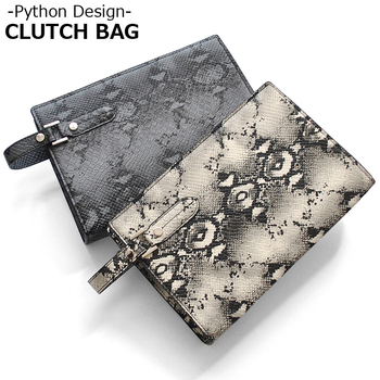 フェイクレザーパイソン柄メンズクラッチバッグ No.2615