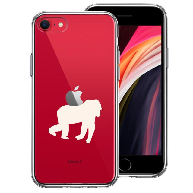 iPhone8 ケース クリア ゴリラ りんご 運搬中 ホワイト スマホケース 側面ソフト 背面ハード ハイブリッド