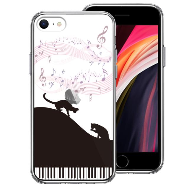 iPhoneSE ケース 第3世代 第2世代 クリア ピアノ シルエット猫 ブラック スマホケース 側面ソフト 背面ハード ハイブリッド 送料無料
