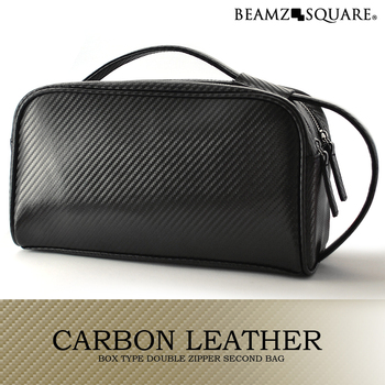 カーボンレザー(牛革BOXYセカンドバッグ BK BEAMZ
