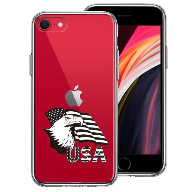 iPhoneSE ケース 第3世代 第2世代 クリア シェル 白頭鷲 星条旗 スマホケース 側面ソフト 背面ハード ハイブリッド 送料無料