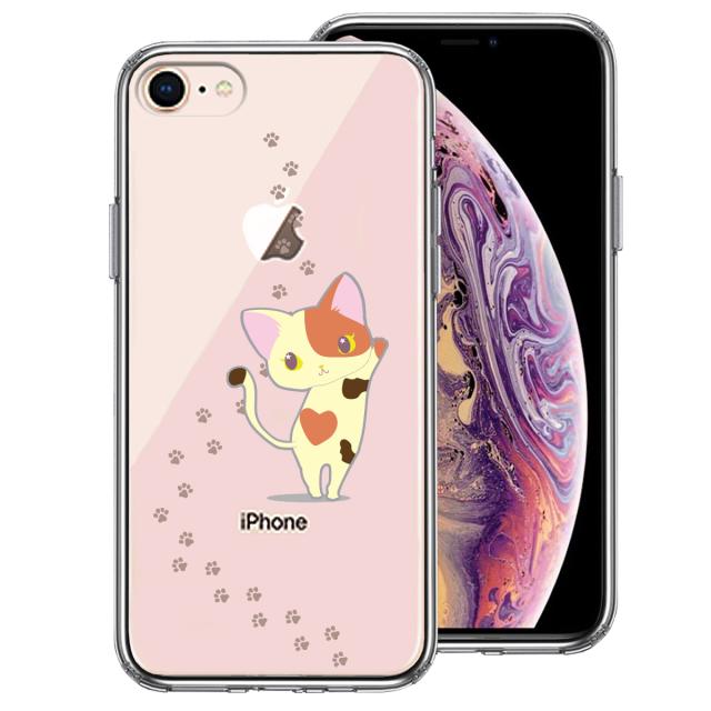 iPhone7 iPhone8 ケース クリア ジャケット 三毛猫 足跡 スマホケース 側面ソフト 背面ハード ハイブリッド 送料無料