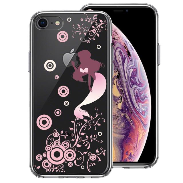 iPhone7 iPhone8 ケース クリア マーメイド 人魚姫 ピンク スマホケース 側面ソフト 背面ハード ハイブリッド 送料無料
