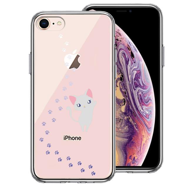 iPhone7 iPhone8 ケース クリア ジャケット ねこ フットプリント スマホケース 側面ソフト 背面ハード ハイブリッド 送料無料