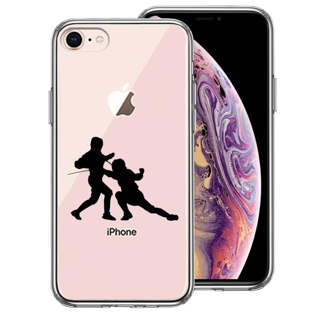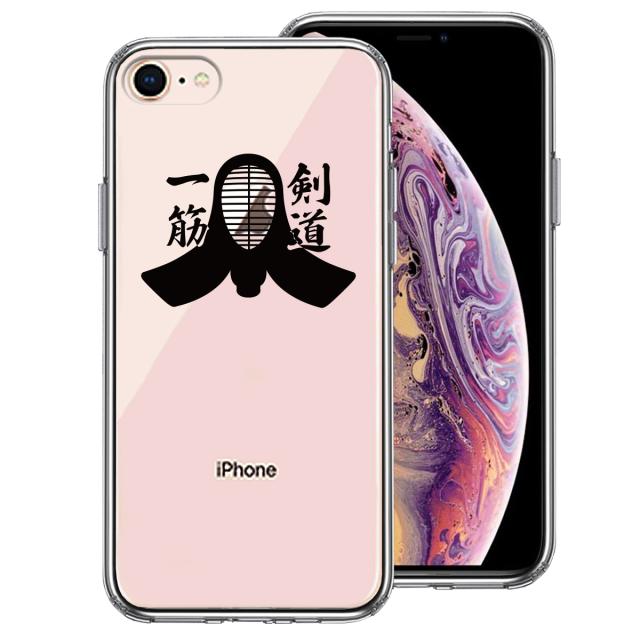 iPhone7 iPhone8 ケース クリア 剣道 面 黒 スマホケース 側面ソフト 背面ハード ハイブリッド 送料無料