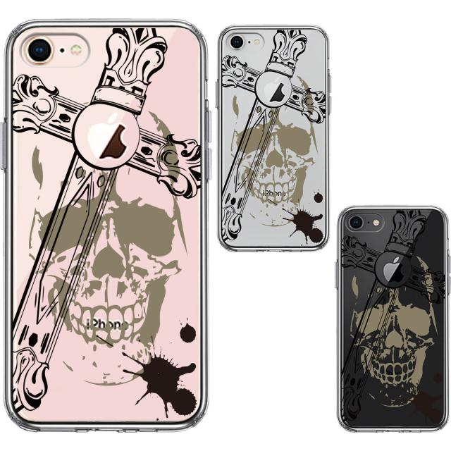 iPhone7 ケース クリア クロス &スカル スマホケース 側面ソフト 背面ハード ハイブリッド