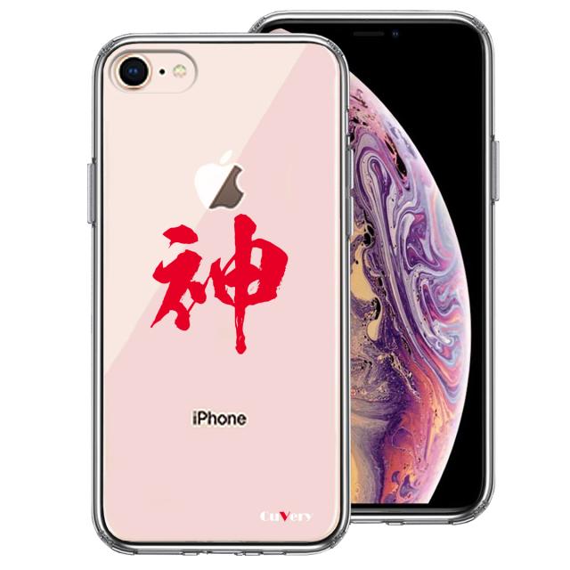 iPhone7 iPhone8 ケース クリア シェル 漢字 文字 神 レッド スマホケース 側面ソフト 背面ハード ハイブリッド 送料無料