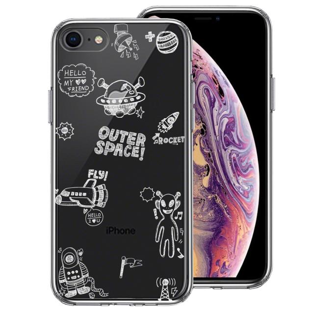 iPhone8 ケース クリア UFO 宇宙人 ホワイト スマホケース 側面ソフト 背面ハード ハイブリッド 送料無料