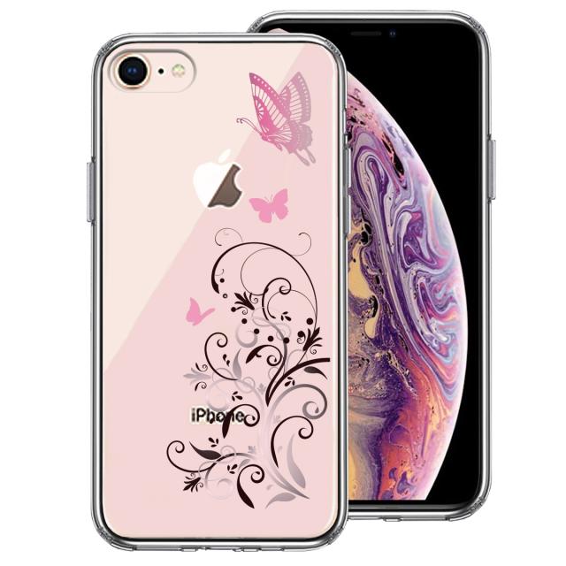 iPhone7 iPhone8 ケース クリア フローラル バタフライ ピンク スマホケース 側面ソフト 背面ハード ハイブリッド 送料無料