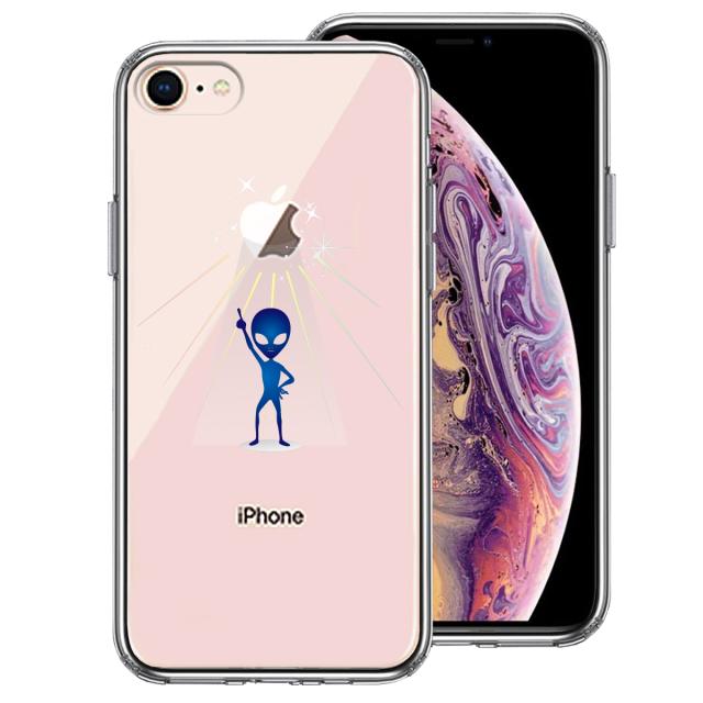 iPhone7 ケース クリア 宇宙人 フィーバー ブルー スマホケース 側面ソフト 背面ハード ハイブリッド