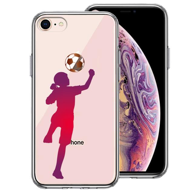 iPhone8 ケース クリア サッカー ヘディング 女子 スマホケース 側面ソフト 背面ハード ハイブリッド 送料無料