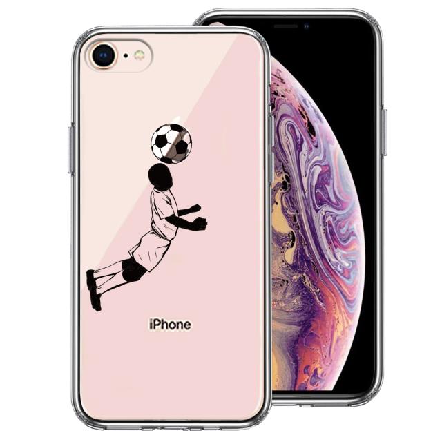 iPhone8 ケース クリア サッカー ヘディング 男子 黒 スマホケース 側面ソフト 背面ハード ハイブリッド 送料無料